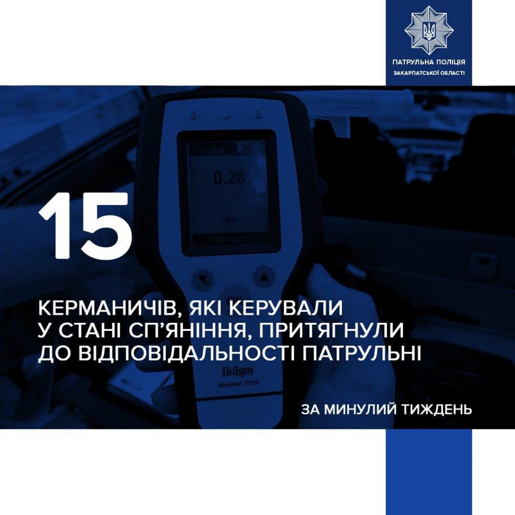 Az elmúlt héten a kárpátaljai járőrök 15 járművezetőt vontak felelősségre ittas vezetés miatt – közölte a megyei rendőrség közlekedésrendészeti osztálya.